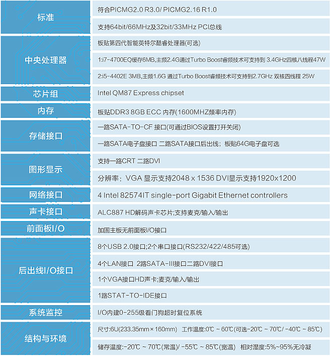CP6-H17BC6是一款基于Intel Core QM87芯片組架構刀片Compact pci板;