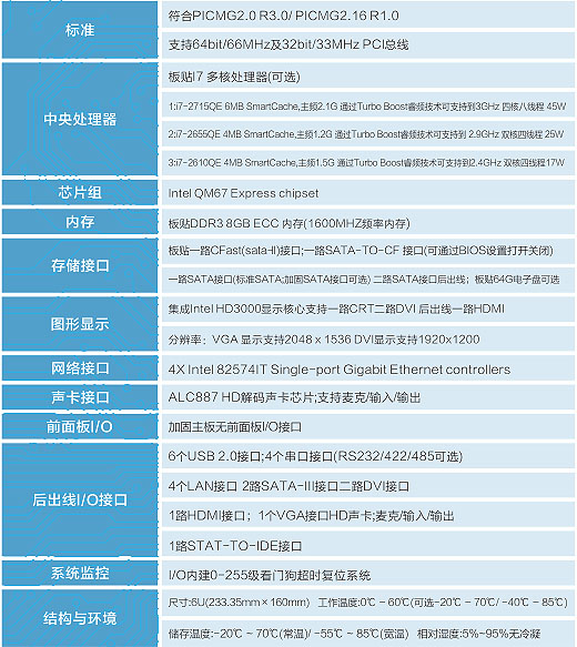 CP6-H10BC5是一款基于Intel Core QM67芯片組架構刀片Compact pci板;