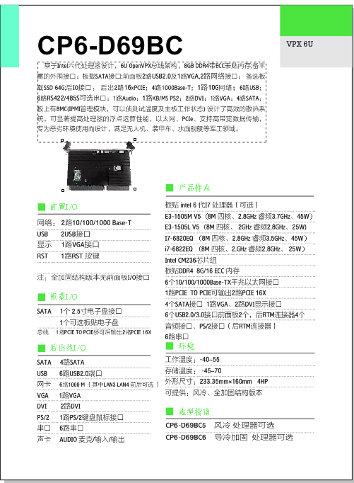 基于Intel六代處理器設計,6U OpenVPX總線架構,8GB DDR4帶ECC表貼內存;備豐